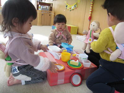 3月3日は桃の節句。山梨こども園でも、各学年で「ひな祭り会」を行いました。