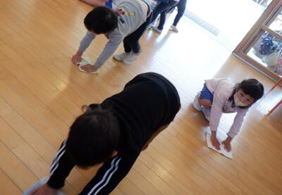 各保育室や廊下の掃除、窓ふき、水道掃除をやっていただき、園内がピカピカになりました。子どもたちが、気持ちよく生活できます。ありがとうございました。
