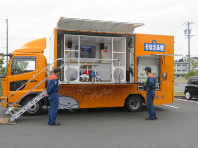 実際に起震車に乗ったことで、揺れの大きさを直に感じ、横だけでなく、縦にも揺れる怖さを知り、どうやって机に掴むのが良いのか考えました。部屋に戻ると、「お部屋で地震がきたらどうしたら良いのかな?」と子どもたちから話が出たので、体験したことを基に話し合いもしましたよ。