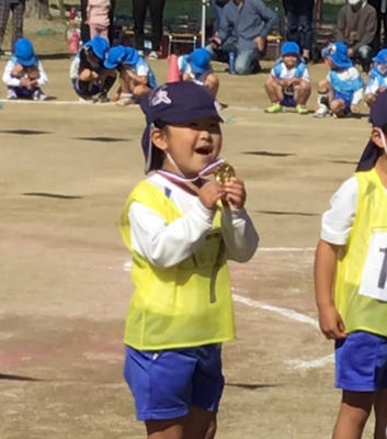 金メダルを手にした年長さんは誇らしげな表情でした。