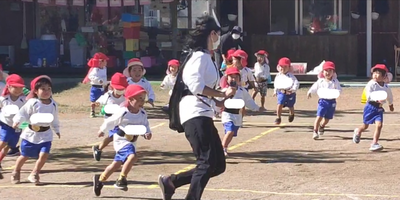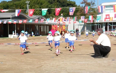 最後はサプライズ徒競走!「園長先生のところまで全力で走るぞ!」