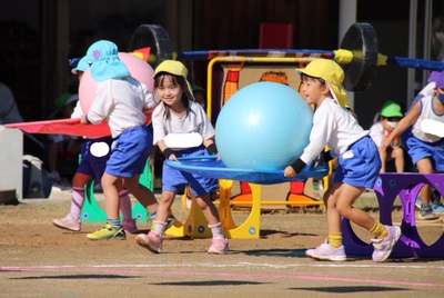 年中さんは友達と力を合わせて頑張りました。一人だと難しいけど、友達と力を合わせれば大丈夫!!
