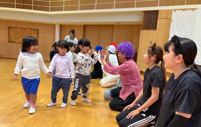 子どもたちは、劇に夢中になって物語の世界に入り込んでいました。笑ったり、少し怖がったりと様々な表情が見られました。音楽や歌に合わせて手拍子も楽しみました。
